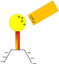 Berikut ilustrasi saat sebuah elektroskop netral di dekati oleh benda bermuatan negatif.